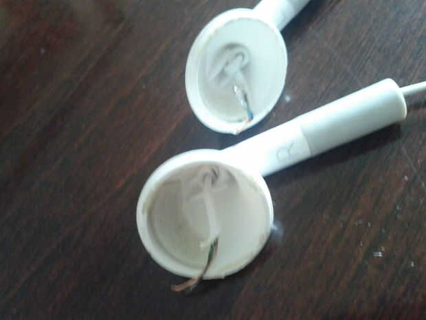 Ahora lugar la parte posterior de usted audífonos te estás cables y retie el nudo en el cable de auriculares que impide que la tensión está poniendo en usted está la soldadura conjunta.