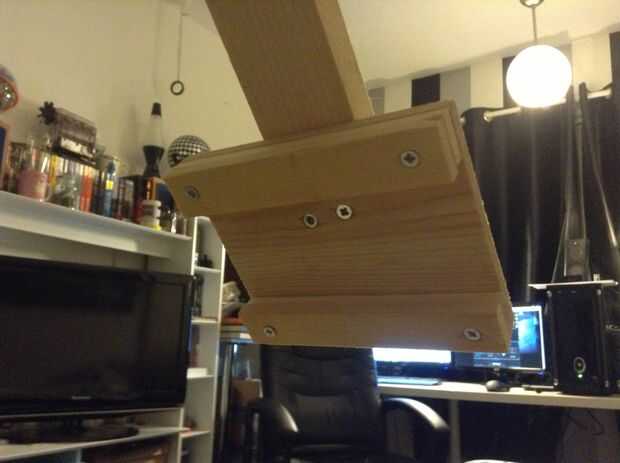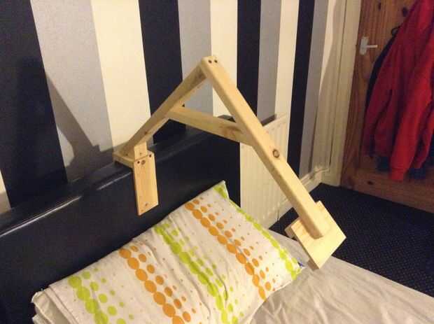 Este soporte de la cama tiene el iPod touch 5 generación pero también llevará a cabo todos los otros modelos de iPod touch y el iPhone 5 (4/4S es demasiado grueso). El iPod se lleva a cabo en un ángulo de 45 grados sobre un pie de su cara, que distancia de la visión perfecta para mí. Se celebra en el tablero de la cama por 2 piezas de madera que encajan perfectamente sobre él. (Ver imagen 3)