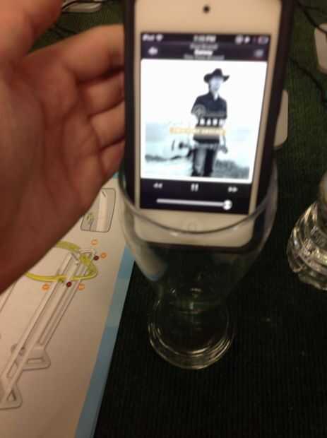 Elegir una canción, subir tu iPod al máximo y jugar la canción. Lleva tu iPod y poner en el vidrio. Si usted tiene un caso que cubre los altavoces se quite o abren el lugar donde están los altavoces.