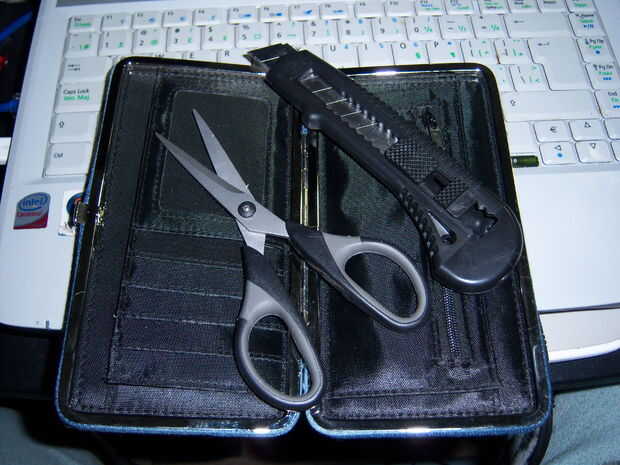 Por lo tanto, necesita una cartera slim bisagra, un par de tijeras y un cuchillo.