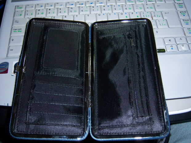 Se trataba de una billetera delgada bisagra. Niñas, ves EM en todo el mundo. De tiendas de dólar, tiendas de grandes marcas/glam. Vienen en diferentes modelos, pero del mismo tamaño general.