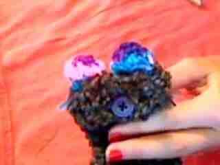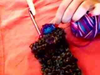 Vuelta otra vez y completa el siguiente patrón: una cadena, tres ganchillos doble agregar, otra cadena para anclar hacia abajo de la oreja.