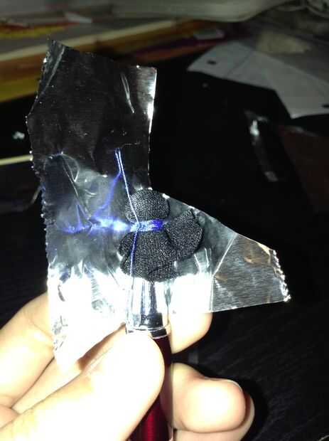 a continuación, corte un aproximadamente 2 por 2 pulgadas cuadrada de papel de aluminio. Luego, cortar cerca de un tercio de ella en forma de trapecio. Corte otra tira de papel de aluminio de las sobras. Envuelva la lámina de la plaza-como alrededor del punto de la pluma. Antes asegure con cinta, deslice un extremo de la tira de papel debajo de la cubierta para ayudar a conducir los electrones. Cuando usted únalos con cinta adhesiva la hoja, en la tira, solo con cinta los bordes. Dejar el medio expuesto de modo que los electrones en los dedos con llevar a cabo. Ahora, han hecho un lápiz muy bonito, la prueba y una vez que has confirmado que funciona, disfrutar! He hecho los dos últimos pasos algunas cosas diferentes (pinchos de bambú, un palillo) para ver el resultado, y resultaron bellas. Si necesita modificar un poco los pasos, seguir adelante. También, puede que necesite encontrar un "sweet spot", un lugar donde siempre funciona para esta aguja en cuanto a la garantía de que funcionará.