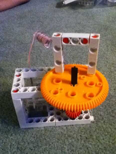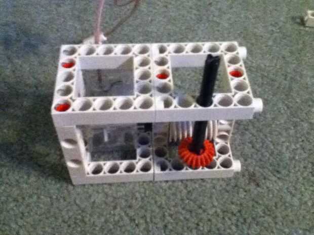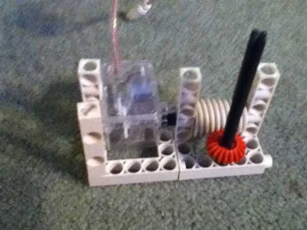 Cuadro 1: Construir esto con el más pequeño de los dos polos negros y el engranaje de turner. Esta es la parte de la máquina que se gire a un engranaje y en efecto, a tu ipod.