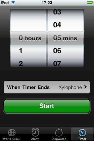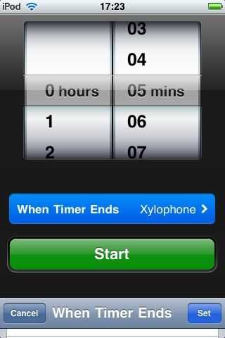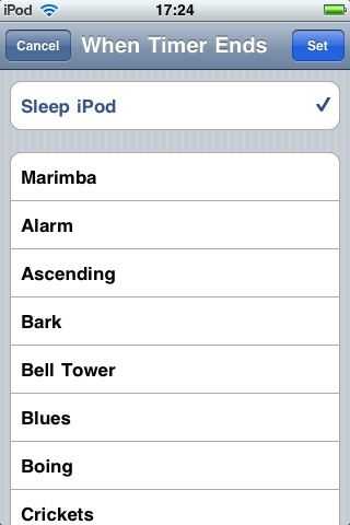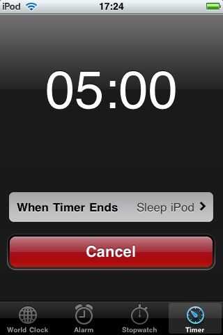 Para hacerlo, sólo ir en aplicaciones de reloj luego en las pestañas de temporizador , luego haga clic en Cuando el temporizador termina e ir a la primera en la lista: dormir iPod y haga clic en él y luego en conjunto. Iniciar el temporizador.