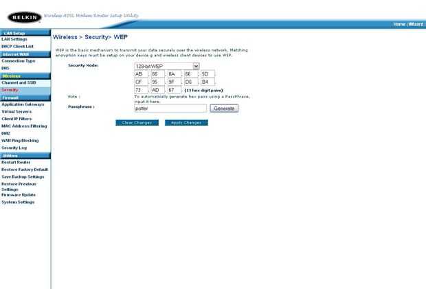 , Entonces necesitará iniciar sesión en su enrutador usando tú contraseña preestablecido o predeterminado. Una vez registrado en tendrá que navegar a la opción de seguridad o algo en ese sentido. Cuando en la seguridad tendrá que buscar el modo de seguridad (debe tener opciones de WEP, WPA etc). Seleccione la opción de WEP. Entonces se le pedirá una contraseña y haga clic en generar, una vez entradas 13 pares de dígitos hexadecimales deben aparecer, tome nota de estos dígitos o entrada directamente en ipod. usted tendrá que poner en cada espacios de sin dígitos.