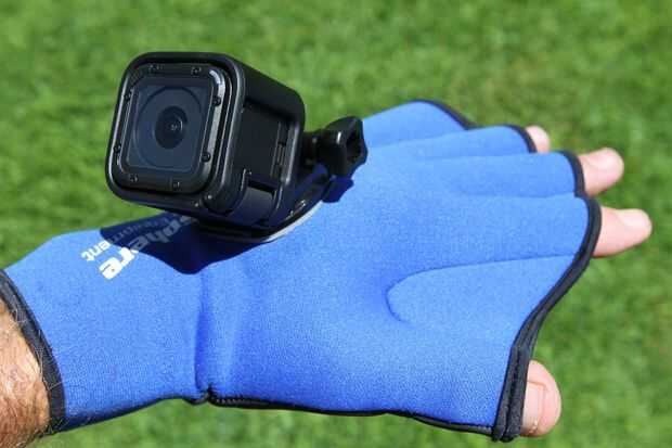 Al surf necesita poder ser capaces de articular la cámara para componer la toma. El método de montaje de la pulsera no funciona bien... en cambio, por ir Pro de montaje en un guante de baño superior se puede lograr todo el rango de movimiento a su mano. Es igualmente importante, especialmente en gran surf, la necesidad de mantener las manos libres para remar y agarrar la tabla de surf. Otra vez el montaje superior en un guante de baño proporciona toda la libertad necesaria.