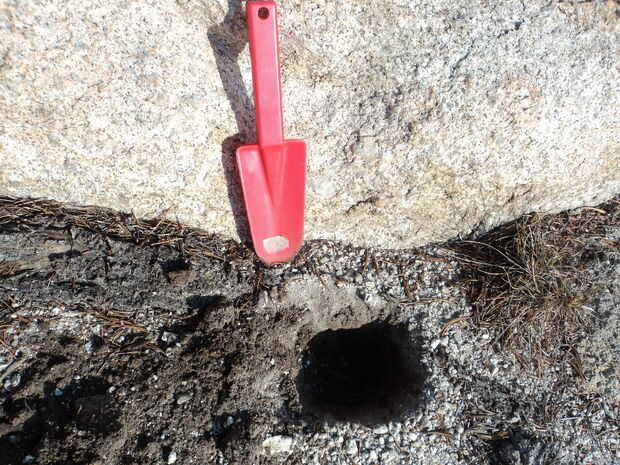 No olvide de cavar al menos 6" de profundidad. Zonas rocosas puede ser difícil, así que buscan tierra suelta o arena trabajar. Erosión de la nieve, lluvia, granizo, viento y hielo pueden exponer su obra en el tiempo y descomposición es lenta a gran altura, por lo que la profundidad de excavación es importante. Puede estar cerca de una roca para apuntalar a sí mismo cuando es tiempo. ¡ Disfrute!
