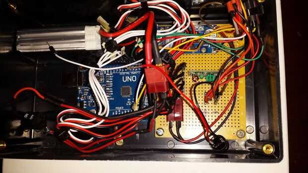El sistema de control comienza con una batería de polímero de litio de 1300mAh. Esta batería es una muerte demasiado poco para este proyecto, pero he comprado con la intención de usos alternativos. Poder luego alimenta un regulador de voltaje ajustable que camina la potencia hasta unos 5.08v. La tensión fue programada originalmente en unos 6.71v para conseguir 5v salida de arduino. Sin embargo, porque los servos continuados recibieron la alimentación principal de la 6.71v fuente y no la fuente de 5v, hizo que no funcione correctamente. Retira el voltaje que sale del regulador de voltaje, a 5.08v resuelto este problema. Así, después del regulador de voltaje, el poder es enviado a un tablero del PWB y distribuido a arduino y todos los demás componentes. El receptor IR, LED y sensor de ultrasonidos están montados en la carcasa que se encuentra en la parte superior del rover. Usted tendrá que soldar filas un par de post en el tablero del PWB con el fin de distribuir el poder y conectores para los diferentes componentes del rover de la tierra.
