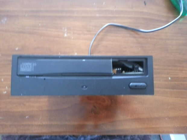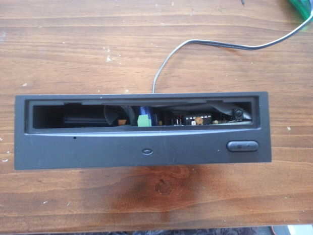 a continuación coloqué todos los componentes en la carcasa de la unidad de DVD. Vuelva a poner la cara en la unidad de DVD y corte la cubierta de la bandeja para que el receptor de IR estar expuesto.