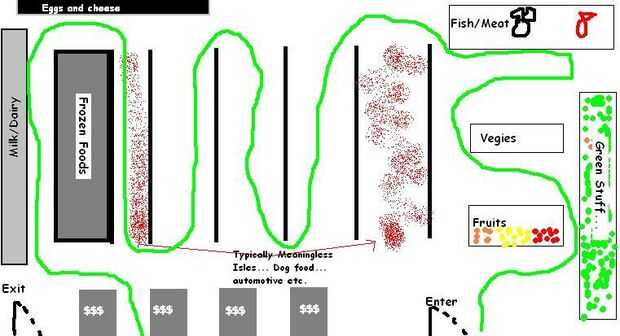 Mayoría de las tiendas, tienen la misma configuración básica que se muestra a continuación si usted nunca ha estado en su tienda local de aplicar mi mapa a tu tienda en consecuencia. No todas las tiendas son iguales, pero por lo general llevan el mismo diseño básico. Este diseño está diseñado específicamente maximizar sus compras... basado en tus hábitos de compra... dicho esto, cada pueblo tiene sus propia compra hábitos así hay diferentes diseños (Cómo sabes si estás en un pozo de pueblo, si el Departamento de electrónica/TV se encuentra en la parte posterior de su Wal * Mart en el centro, lo contrario Wal * Mart Coloque en el extremo izquierdo).