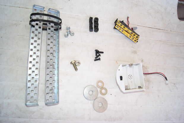 primera orden de negocios permite obtener todos los materiales que usted puede utilizar anythign para el cuerpo usé simplemente viejo vex piezas que vienen con los soportes plástico negro y la tornillería hexagonal, estoy consiguiendo el soporte interruptor y bateria los cables y conectores ya vinieron, la otra tuerca y tornillo que creo que es 3/8 pulg pero su universal para todas las cámaras por lo que debe ser capaces de encontrar uno que se adapte a ustedes y algunos lazos zip
