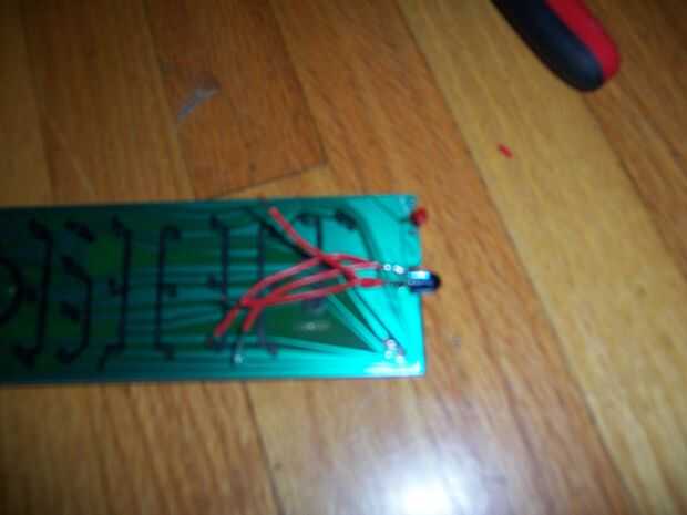 De la soldadura 2 hilos de cada cable del LED infrarrojo original. Luego de la soldadura de uno de cada cable con el cable apropiado de los otros LEDs IR.