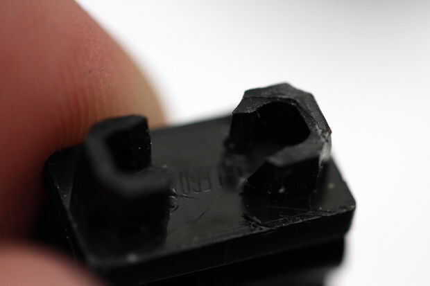 Corte las porciones internas de los postes de la pierna y recortar la parte superior abajo de ~ 2mm. El resto del espacio para la batería tendrá que venir de las clavijas del hombro... recorte todo encima de la protuberancia que tiene el brazo en su lugar. Puede que necesite ajustar la batería tal como vas para asegurarse de que usted ha eliminado suficiente plástico.