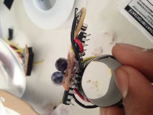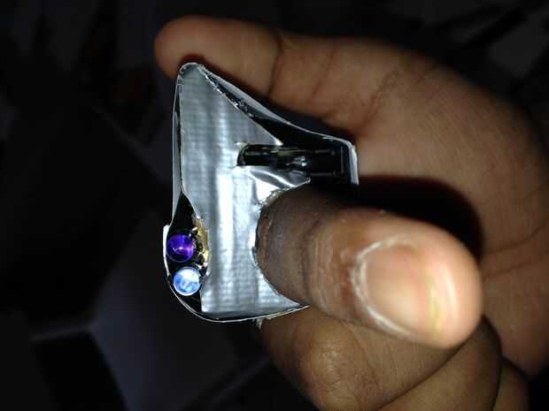 El IR-PF #5 es la última versión que la batería de esta versión es una batería de botón CR2032 que era un factor principal que hace esto más pequeño. El circuito ha sido cubierto que le dio su cuerpo. El titular de la IC fue quitado por lo que se ahorra algo de espacio. Esta es la versión mejor que otros, pero básicamente tienen los componentes. Podría añadir un interruptor de contacto así que cuando el dedo pulgar la parte izquierda de IR-PF se completa el circuito y ahorra una gran cantidad de batería que aumentaría la duración de la batería.