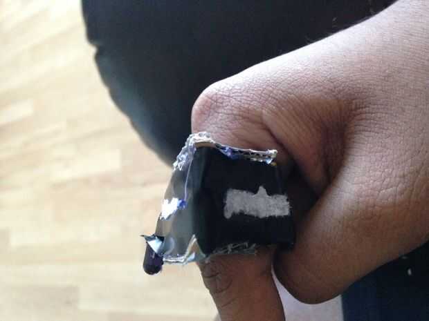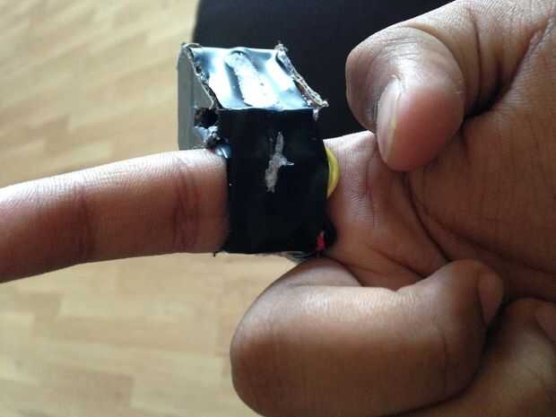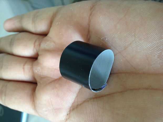 Hacer un anillo de aluminio que arrolla para arriba una vez y 1/2 pulgada de ancho o 1 pulgada dependiendo del tamaño del dedo.