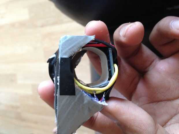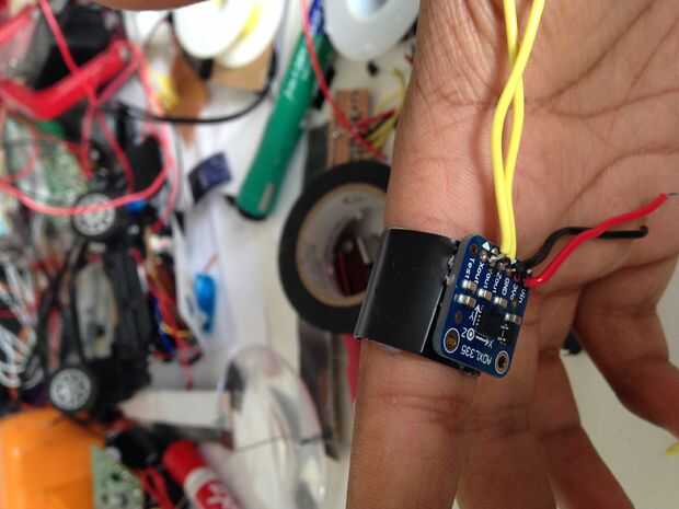 Primero pegamento caliente el acelerómetro hacia abajo en la parte inferior del anillo.