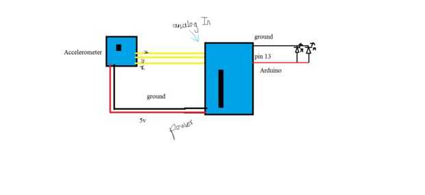 1. Siga el esquema anterior y conecte los cables de acelerómetro al ATMEGA328 xaxis a 23, y 24 y z a 25.