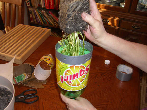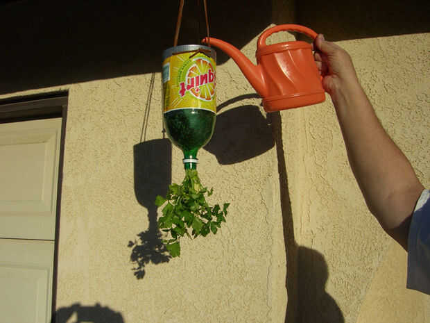 El concepto es que mantiene las plantas de la tierra de las plagas y colgando boca abajo las plantas naturalmente crecerá hacia arriba hacia la luz del sol. Con el agua que fluye hacia abajo a la planta sí mismo también obtiene humedad y nutrientes en sus hojas, así produciendo una planta más robusto rendimiento.