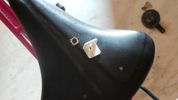 El trabajo detrás de esto es el empuje para interruptor! El interruptor o bien se monta en uno de la manija o freno. En la foto de arriba, el interruptor se monta en el mango de la bicicleta. Por lo tanto, cuando se aplica el freno, empuja el interruptor así, activándolo. A su vez activa la matriz de LED rojo montada en la parte posterior. Para montar el interruptor, se deben taladrar agujeros en el soporte de plástico L según el interruptor va a montarse en. Antes de montar el interruptor, asegúrese de que soldar los cables para ello. Montaje se puede hacer mediante el uso de gomas y lazos de cierre de cremallera.