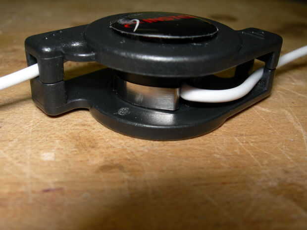 6. probar la retracción para ver lo bien que funciona. Debería replegarse hacia el conector de audio. Si no es así, entonces puede que deba quitar la tapa otra vez y lo del viento un poco más. Aunque desea que el tirón de la primavera a ser débil cuando se está totalmente retraída.