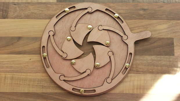 bien, después de mi primer intento en un iris mecánico ayer, quería hacer otro este tiempo con una placa trasera abierta completa.Así que reviso mis dibujos, y cambiar el tamaño de las hojas, por lo que los pernos de la pista de viaje en un camino si