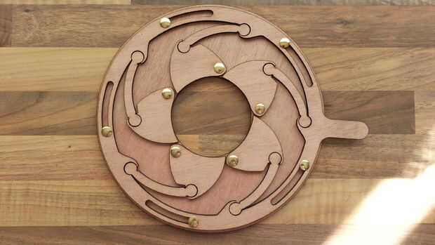 Modmischief había creado esta versión mejorada de la tarjeta de felicitación de iris mecánico de YuKonstruct vacaciones tarjeta de construcción denoche.Este nuevo diseño resuelve el problema de las piezas del obturador en los extremos de los clavitos