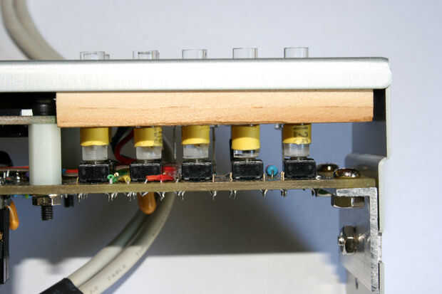 - A continuación, utilice un cuchillo para cortar los agujeros de botón del panel frontal. No hay ningún Consejo aquí excepto para ser tan limpio como sea posible - no es fácil cortar círculos de 5 mm en plástico.