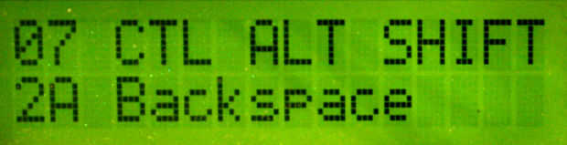 YY = código de clave de USB en hexadecimal (por ejemplo 2A es retroceso)