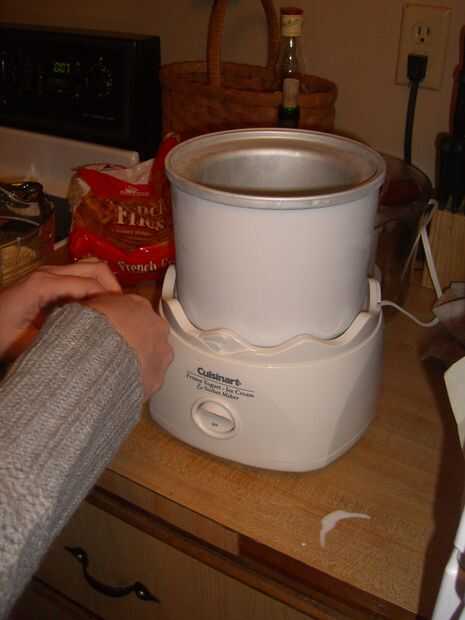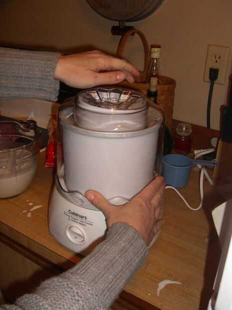 Tomar el tazón de fuente del congelador, armar tu heladora y enchúfelo.