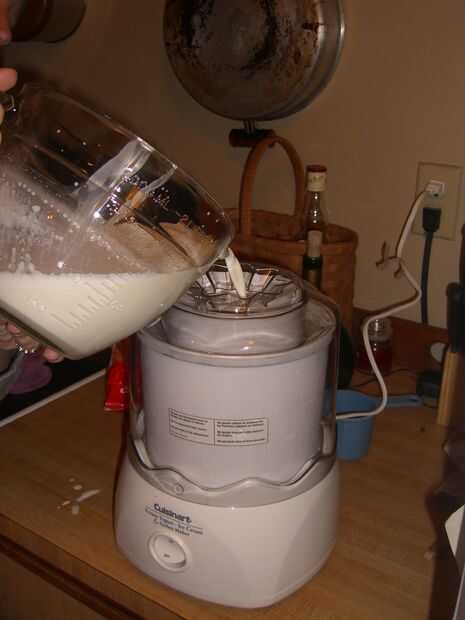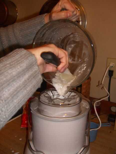 El paso más importante aquí es para encender el fabricador de helado antes de empezar a verter la mezcla!