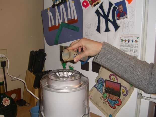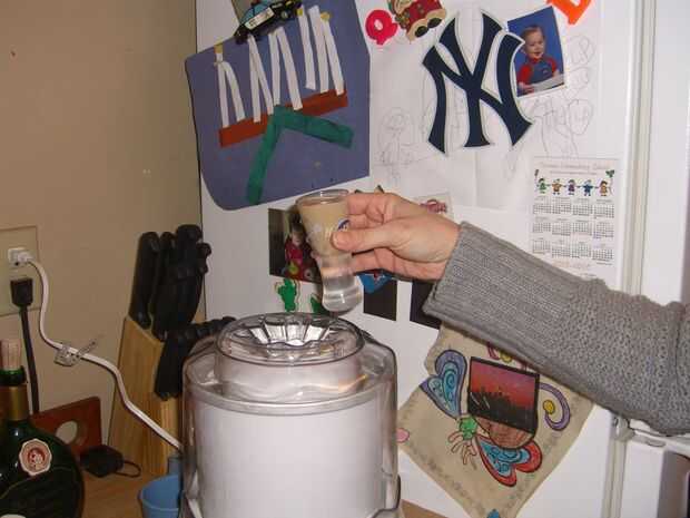 Después de 20 minutos, cuando el helado es agradable y espesa, añadir los dos tiros de Bailey, mientras que todavía es la mezcla de la máquina. Continuar dejar que la máquina a mezclar durante otros 5 minutos.