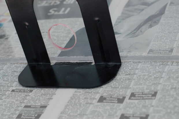 Perfore un agujero del tamaño de su conducto en medio de 2 rectángulos como cerca de la parte inferior que puede, dejando espacio para los rodamientos. es decir, poner el rodamiento en la parte inferior de la plexi y traza el interior de la misma para saber dónde perforar.