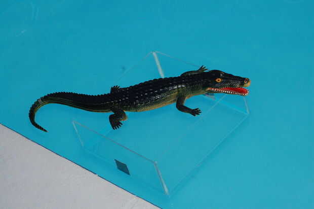 Aprende a hacer tus propios Señuelos de la pesca. Fabricación del molde y fundición.Paso 1: Fije el objeto Las chinchetas se usaron para asegurar la rana de goma para el envase de plástico. Colocar el pasador por la parte inferior del recipiente plás