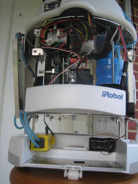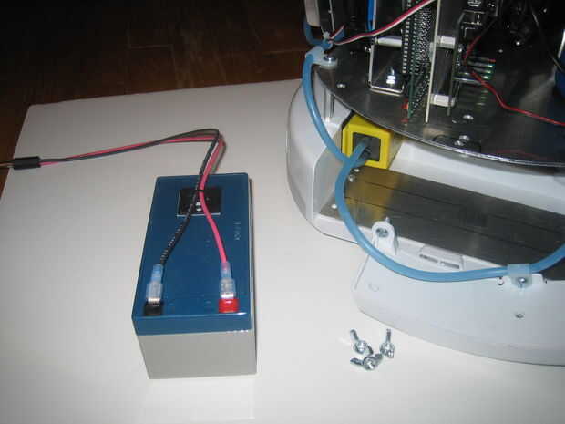 La bahía de carga tiene la bomba de agua reversible 12V, 4 baterías del AA para la energía del servo y la batería de plomo 12V.