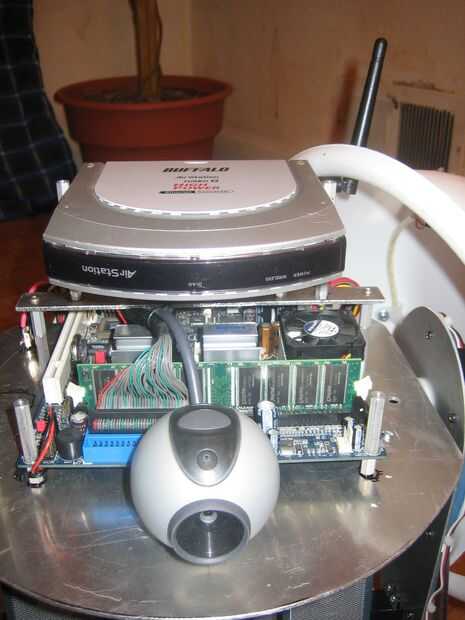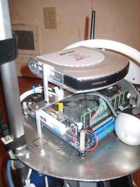 Hay una mini-itx placa base montada en la cubierta superior. Para un enlace inalámbrico un 802.11G puente inalámbrico fue montado sobre la placa base con la antena asomando a través de la plástica de la bóveda.