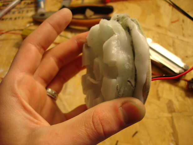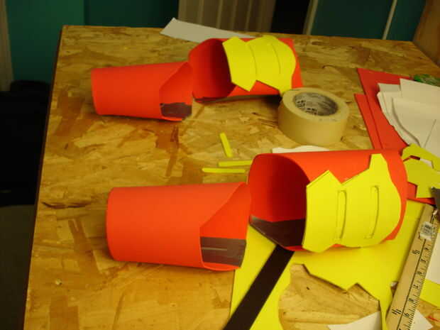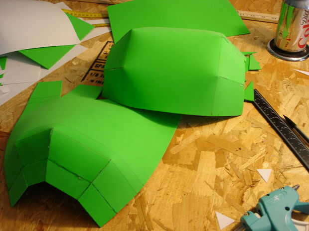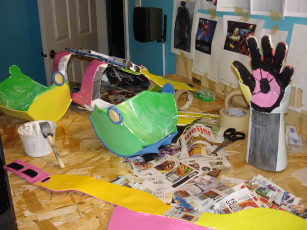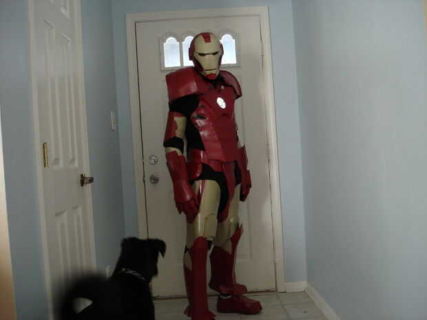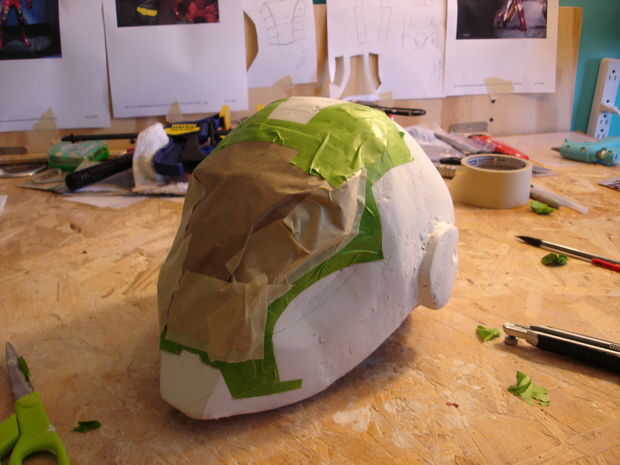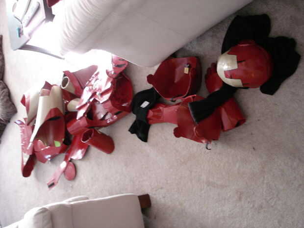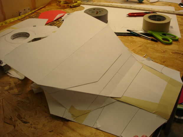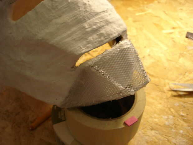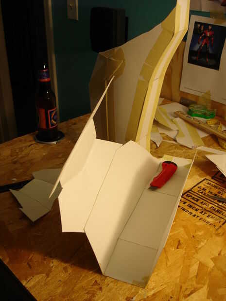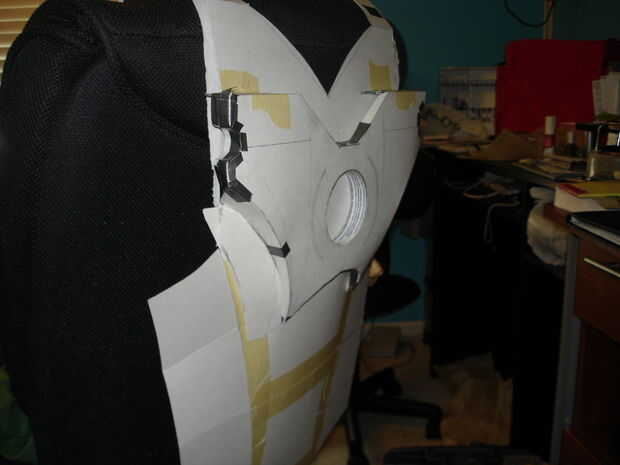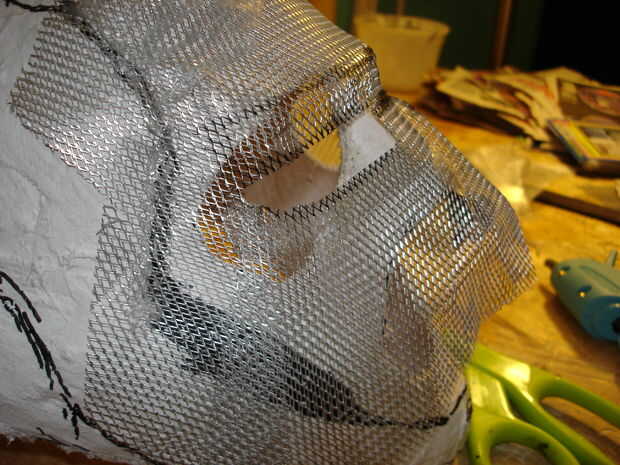 El casco tomó aproximadamente 40 horas de trabajo (incluyendo secado, lijado, bondo y pintura). Se realizó creando primero un molde de mi cabeza como la base con vendas de yeso se puede llegar desde artes y tienda de artesanía (arte Plast'r es la marca). Una vez este seco construí hierro hombre marca 3 formas mediante el uso de una malla muy fina de aluminio (mantenidos por pegamento caliente) se pueden obtener de artesanías tiendas así cerca de las arcillas. Una vez que usted piensa que tiene la forma hacia abajo, colocar más vendas de yeso. Si no se ve bien como mi primer intento (no chin) entonces repita el proceso con más acoplamiento y vendajes. Entonces, cubra el exterior del casco con bondo en pequeños incrementos, lijado entre cada aplicación para lograr un acabado liso. Después de eso es solo pintura.