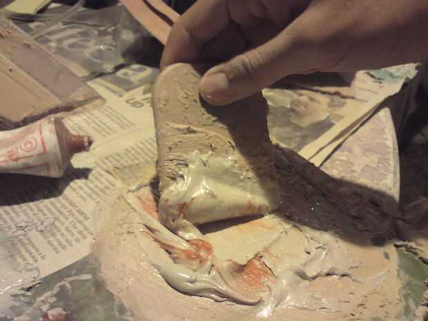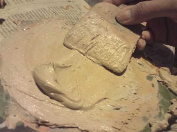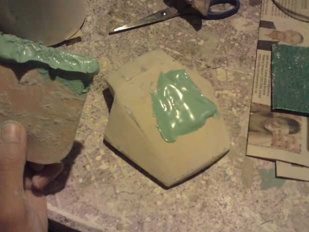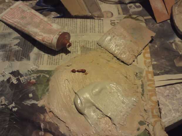 Poner sus guantes, gafas de protección ocular y respirador. Mezclar muy bien una pequeña porción del llenador del cuerpo y el endurecedor hasta tener una mezcla de un color.