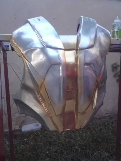 Esperar 24 horas y cubre con periódico y cinta de enmascarar las áreas que deben ser cromado o dorado. Ahora puede aplicar 2 a 4 capas de pintura roja dependiendo de la intensidad de color que desee.