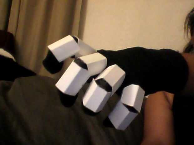 El archivo y el visor son libres (se adjunta archivo para mi instructable Iron man). Las piezas se cortan a y caliente pegado junto y sobre el guante. Ser prudente con la cantidad de pegamento a usar. Los guantes, al igual que cualquier otro tejido, pueden absorber muy bien el pegamento y se adhiere al papel con facilidad. Conseguir la alineación y la posición derecha antes de pegar o se encontrará a corte y tener que comprar guantes nuevos. Un guante me llevó unas 5 horas.