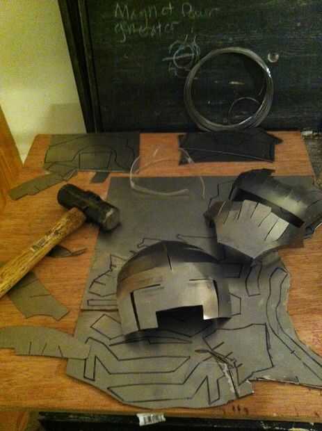 Empezar a golpear ese martillo acero. Algunos AC/DC o Black Sabbath de la manivela y fingir que está cautivo en una cueva. Comencé este proyecto en el invierno para arriba en las montañas, por lo que era fácil de golpear cosas con el martillo, porque tiene la sangre que fluye y me calienta el dedo bits. Dependiendo de cómo usted huelga del metal de hoja y herramienta que se usa, puede el acero, así como el contorno de la curva y delgada del material. Imagine que empuja su dedo a través de sandwich-envoltura de plástico. Que está haciendo lo mismo... sorta kinda. Cuando crees que tienes la pieza curvada de la manera correcta, se burlan hasta el papel que ya construido. Si es así, grande!, si no, continuar. Todos aunque hay un límite de cuántas veces se puede doblar el metal y cuarto antes de fatiga y se rompe, así que ten cuidado. No es gran cosa si se rompe tho, trata sobre el aprendizaje.