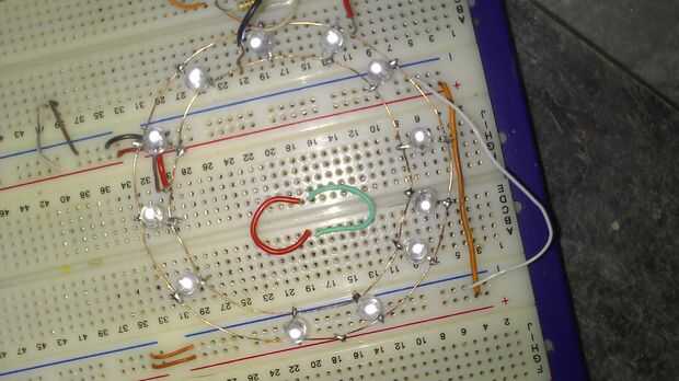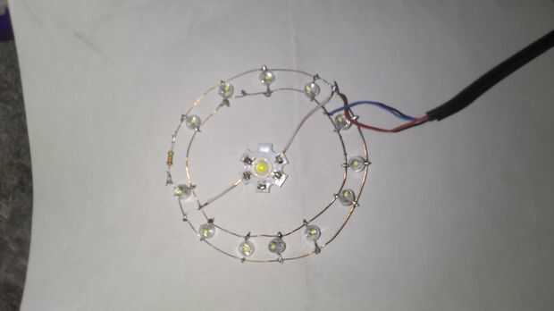 - ahora añadir LEDs en el anillo. no olvide positivo el aro exterior y la pata negativa para el aro interior. No mezclar estos o bien algunos LED no se iluminará.