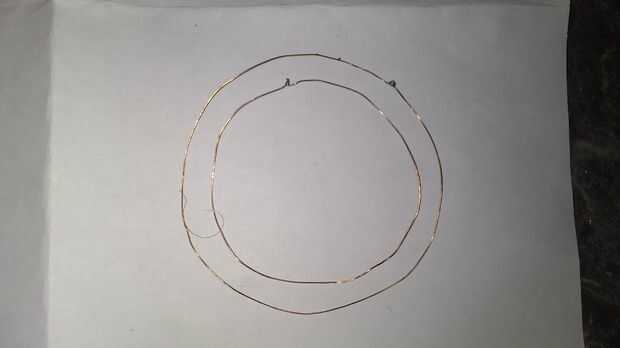 - Hacer un anillo de ese hilo envolviendo alrededor de algún objeto redondo que está cerca de 3 pulgadas de diámetro