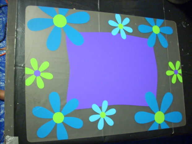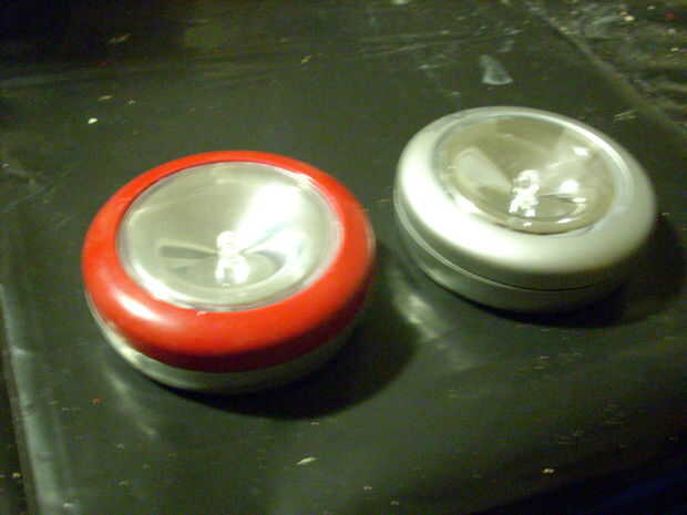 El chestplate de plástico pintado y sostenido por duplicado sobre cinta. El parte posterior del pecho apertura luz estaba cubierto con una pieza de plástico (de un trozo de persiana vertical) y la luz del grifo se ha caído al lugar. La luz del grifo se quedó en el lugar en virtud de la apertura en el pecho cara de plástico es ligeramente más pequeña que la luz sí mismo.