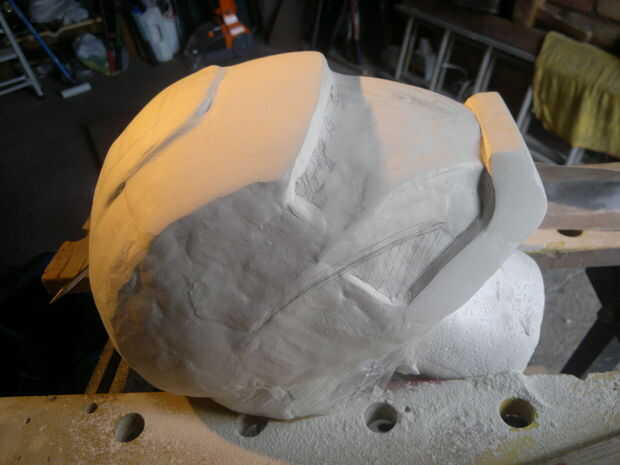 Ahora a empezar a cortar a los lados de la boca y boca a sí mismo. Al principio usé un cuchillo. Niza una luz en un principio más profundo y más profundo hasta que sientes que pueden empezar a cavar la arcilla en esa área.