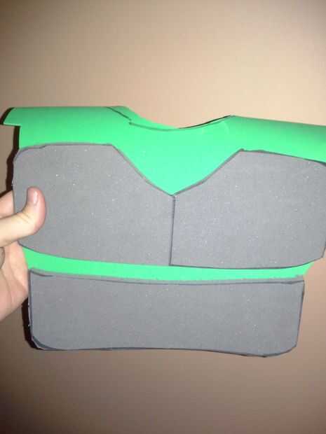Me hecha una mano libre corte del pecho y hombreras, unido a algunas hojas de la espuma que tenía y añadido del Velcro en la parte posterior del mismo para hacer un tipo de camisa de pecho para ir sobre todo
