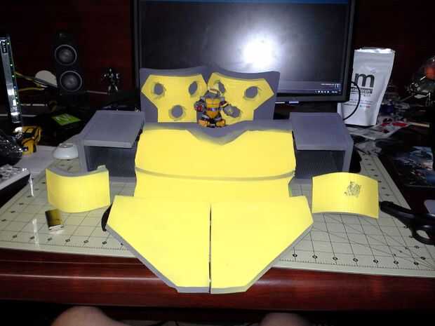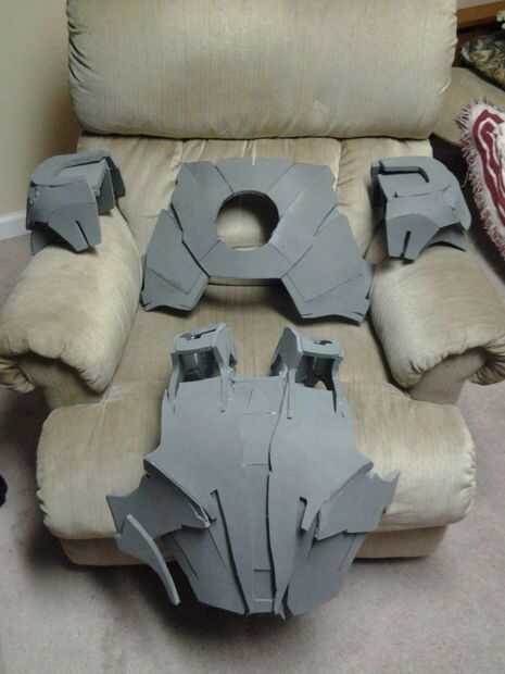 Construí el traje entero de la espuma que de Puerto fletes, aprendí mucho sobre calefacción y doblando con las pistolas de calor y algunas de las costuras cortar en la parte posterior de la espuma un doblado más darle es un acabado más liso.