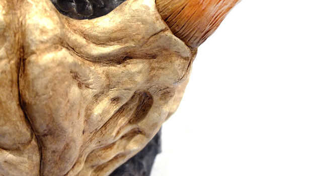 También he añadido algunos ligera oxidación usando las pinturas naranja negras, castañas y brillantes. Estos detalles fueron sumado con un pincel pequeño. Una combinación de cepillado en seco y lavado húmedo consigue el acabado final.