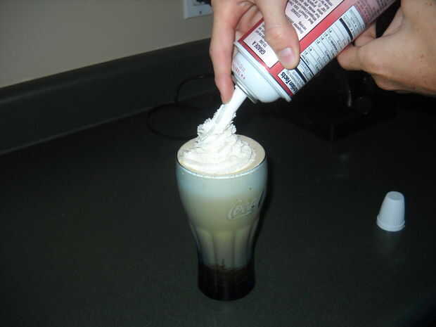 Encima de un remolino de crema batida y decorar con sirope de chocolate. Ahora Siéntate y disfruta disfruta de su frappuccino irresistiblemente delicioso!