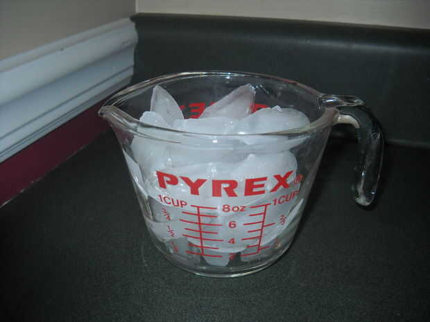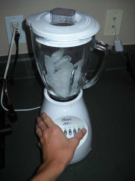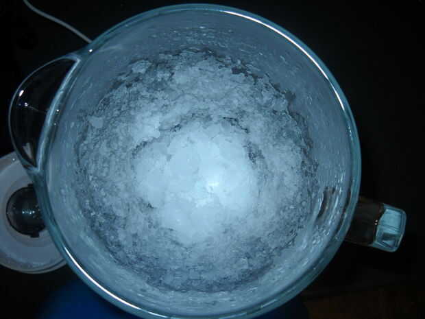 Medida 11/2 tazas de hielo y ponlo en la licuadora. Licue a alta hasta que el hielo se rompe para arriba.